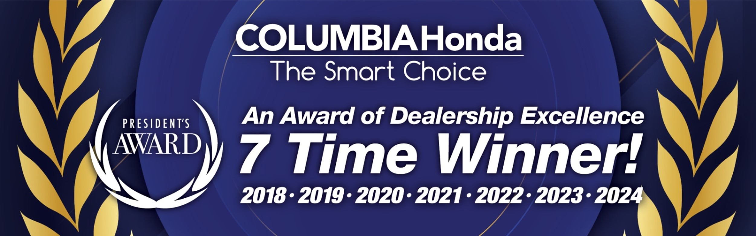 Columbia Honda is celebrating seven years of excellence and is the proud recipient of seven Honda President’s Awards. Only 10% of dealers receive this award annually, meaning you can count on one hand those dealerships who have received it for seven consecutive years, and Columbia Honda is one of them.