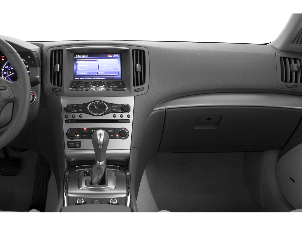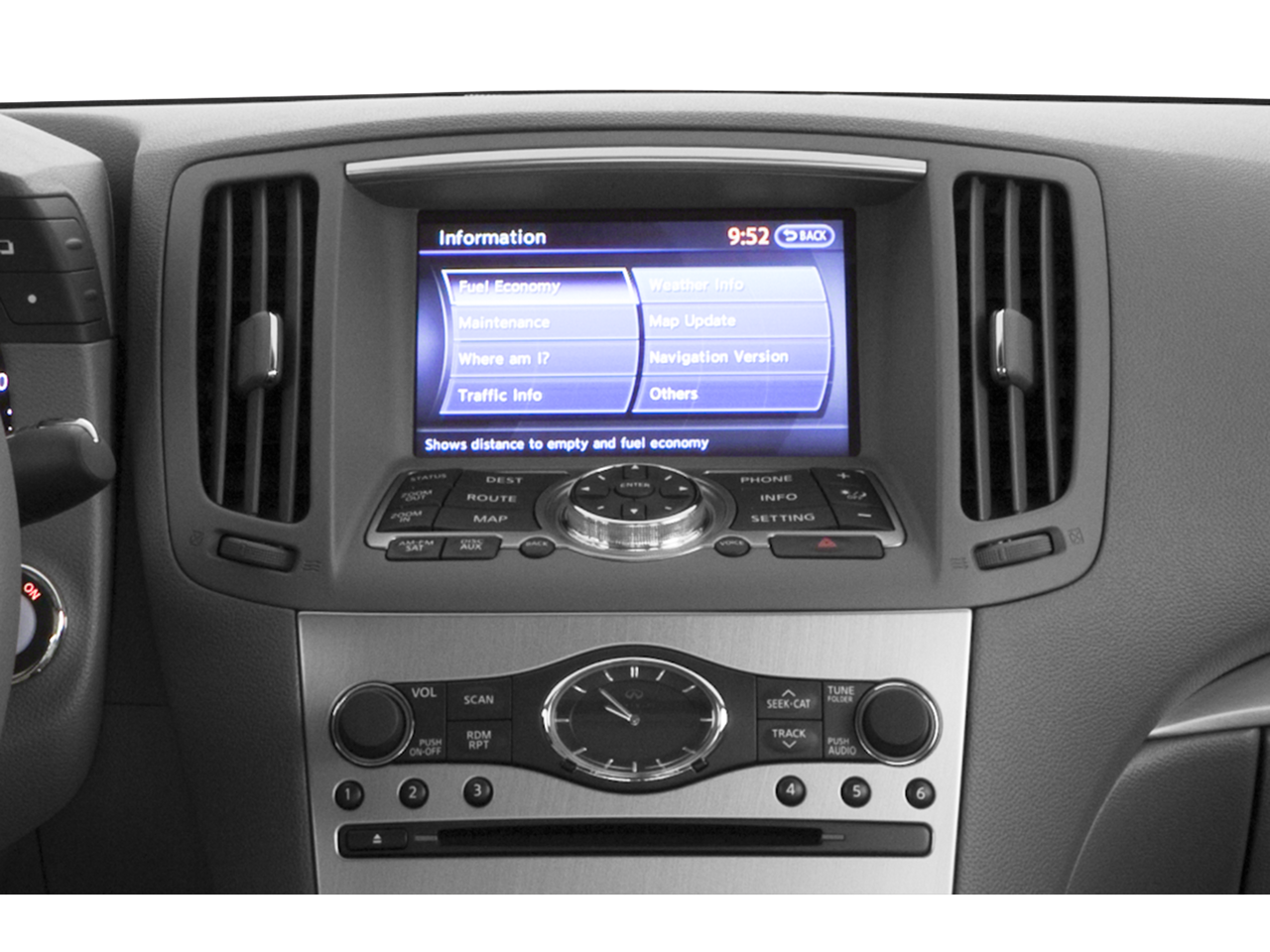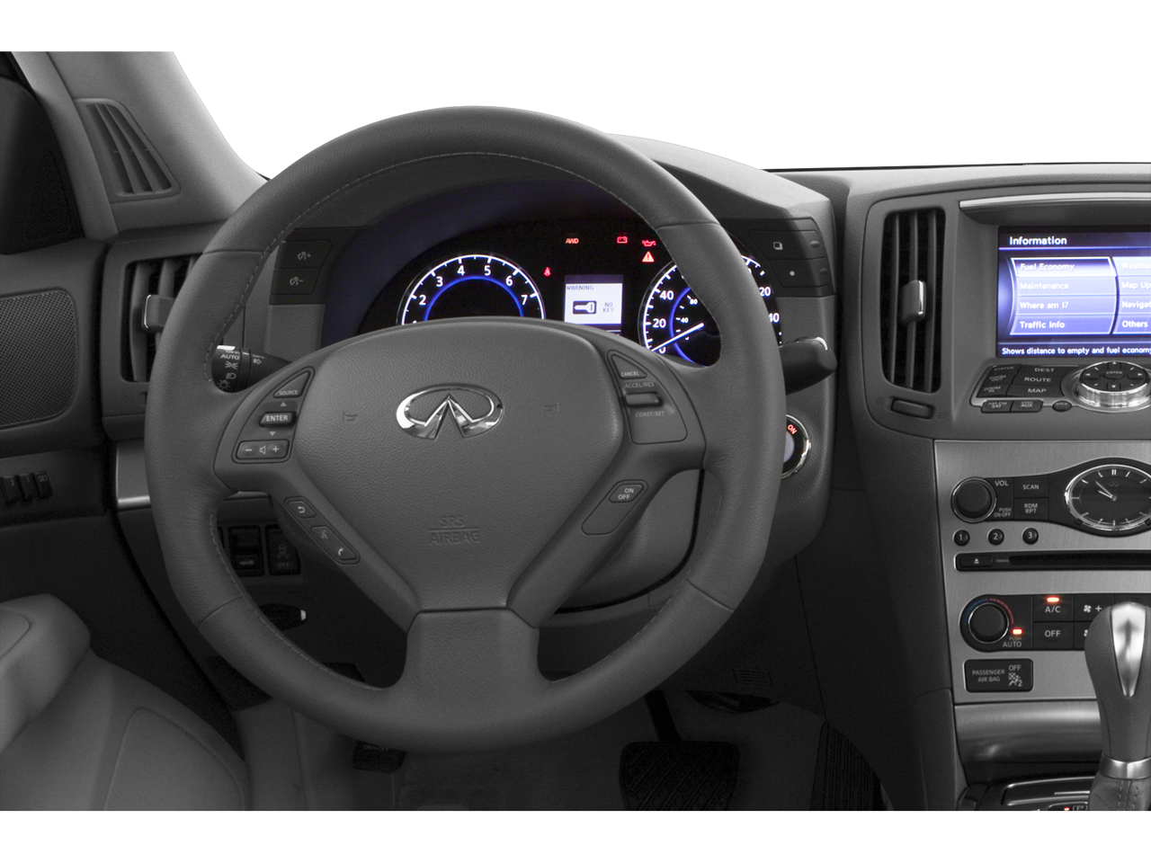 - Radio: AM/FM Single Disc CD -inc: 6-speaker audio system, SiriusXM satellite radio, 7" color display w/INFINITI controller, speed sensing volume control, USB port for iPod integration and Bluetooth® hands-free phone system