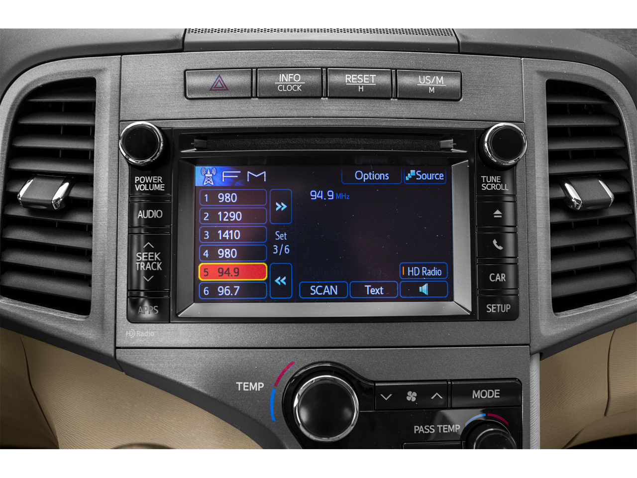 - Radio: Entune Audio Plus -inc: a 6.1" high resolution touch-screen display, AM/FM CD player, MP3/WMA playback capability, 6 speakers, auxiliary audio jack, USB 2.0 port w/iPod connectivity and control, advanced voice recognition, hands-free phone capability, phone book access and music streaming via Bluetooth® wireless technology, SiriusXM Radio w/90-day complimentary trial, HD Radio, HD traffic and weather in major metro areas and integrated backup camera display w/projected path