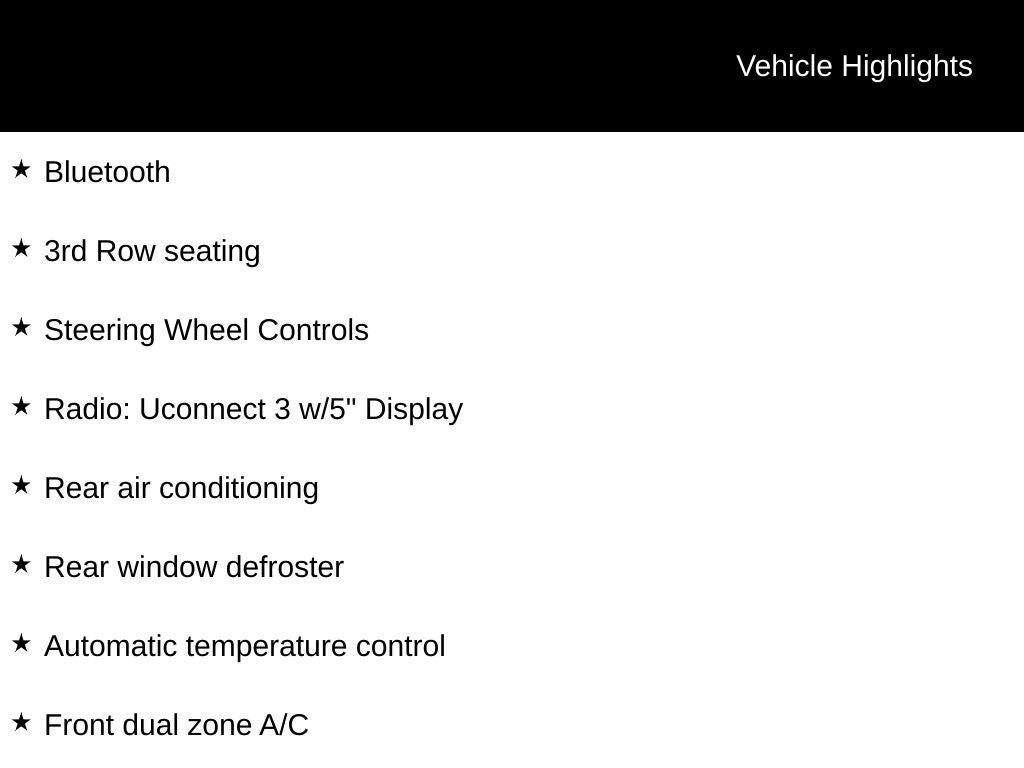 - Power Rear Windows and Fixed 3rd Row Windows