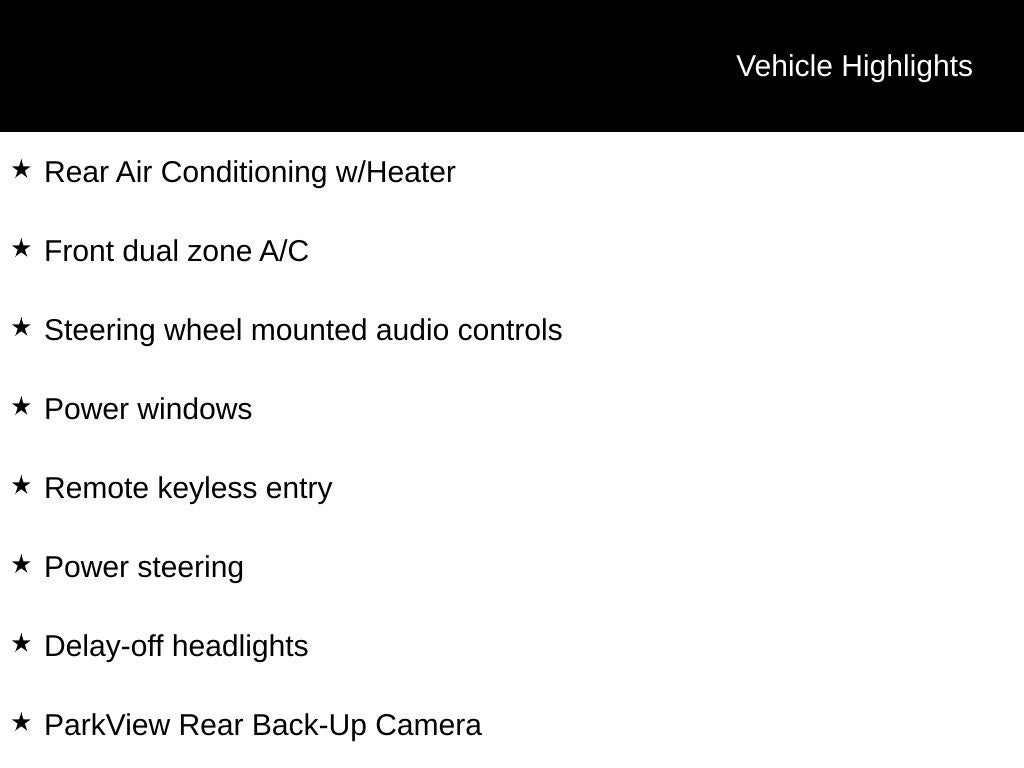 - Power Rear Windows and Power Vented 3rd Row Windows