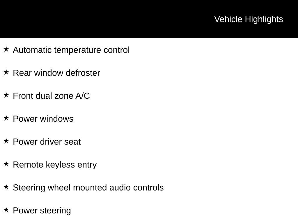- Dual Zone Front Automatic Air Conditioning