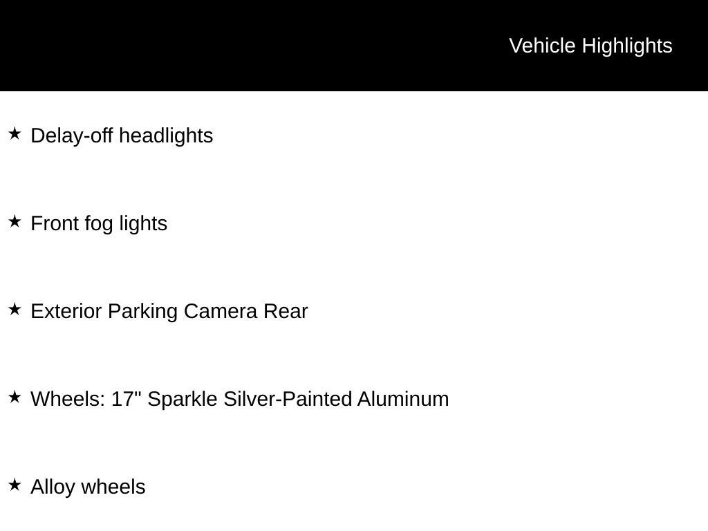- Wheels: 17" Sparkle Silver-Painted Aluminum