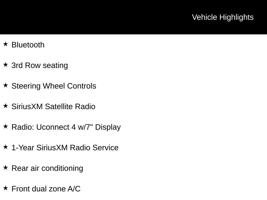 - Radio: Uconnect 4 w/7" Display