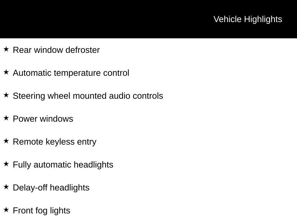 - Radio w/Seek-Scan, Clock, Aux Audio Input Jack, Steering Wheel Controls and Voice Activation
