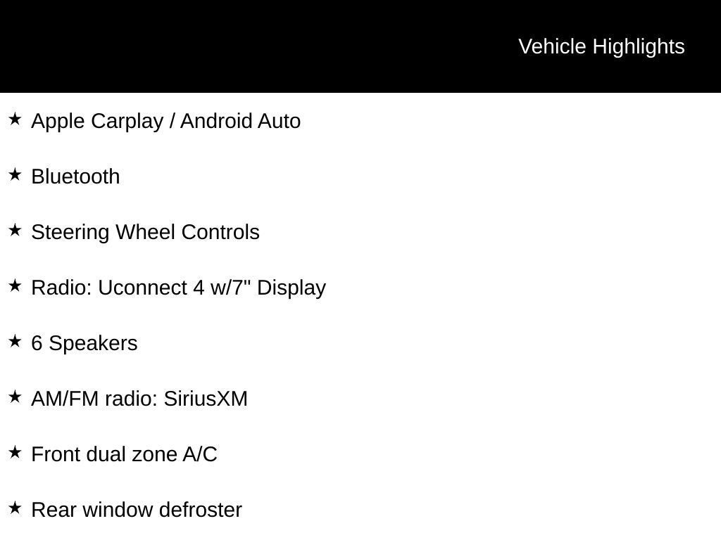 - Radio: Uconnect 4 w/7" Display