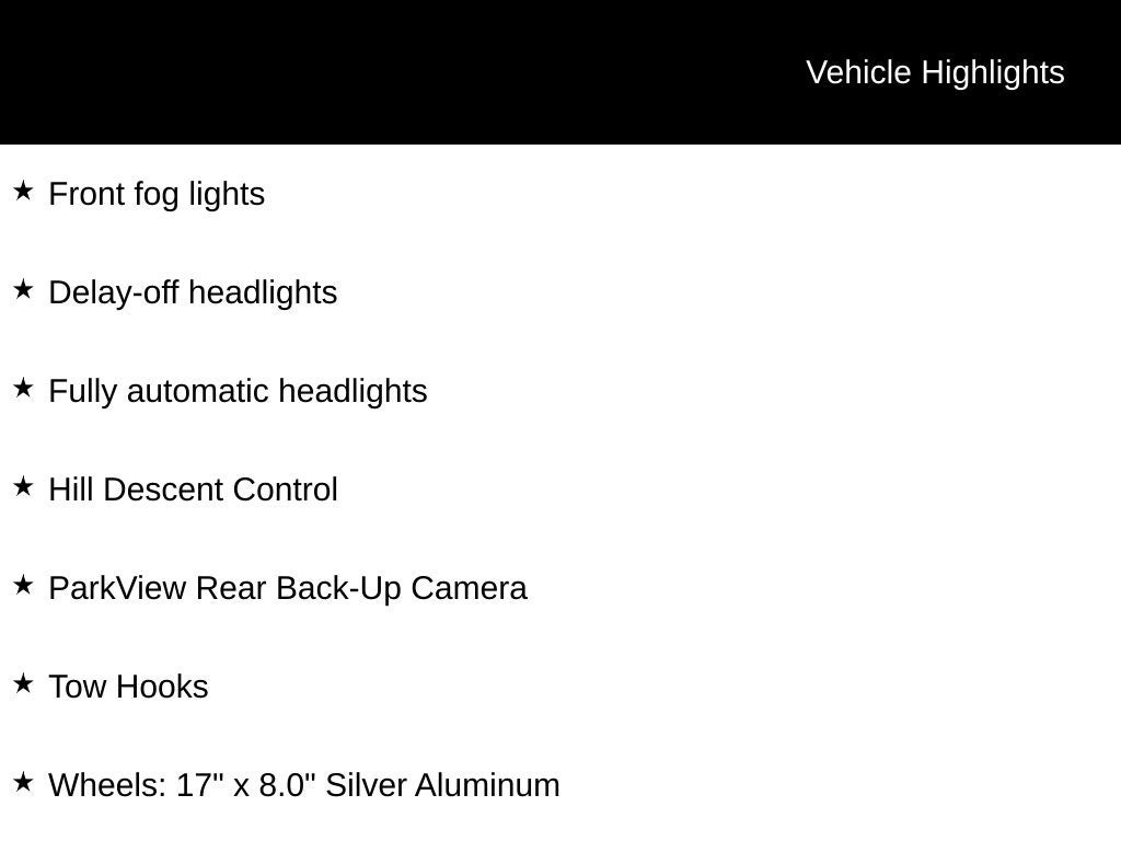 - Wheels: 17" x 8.0" Silver Aluminum