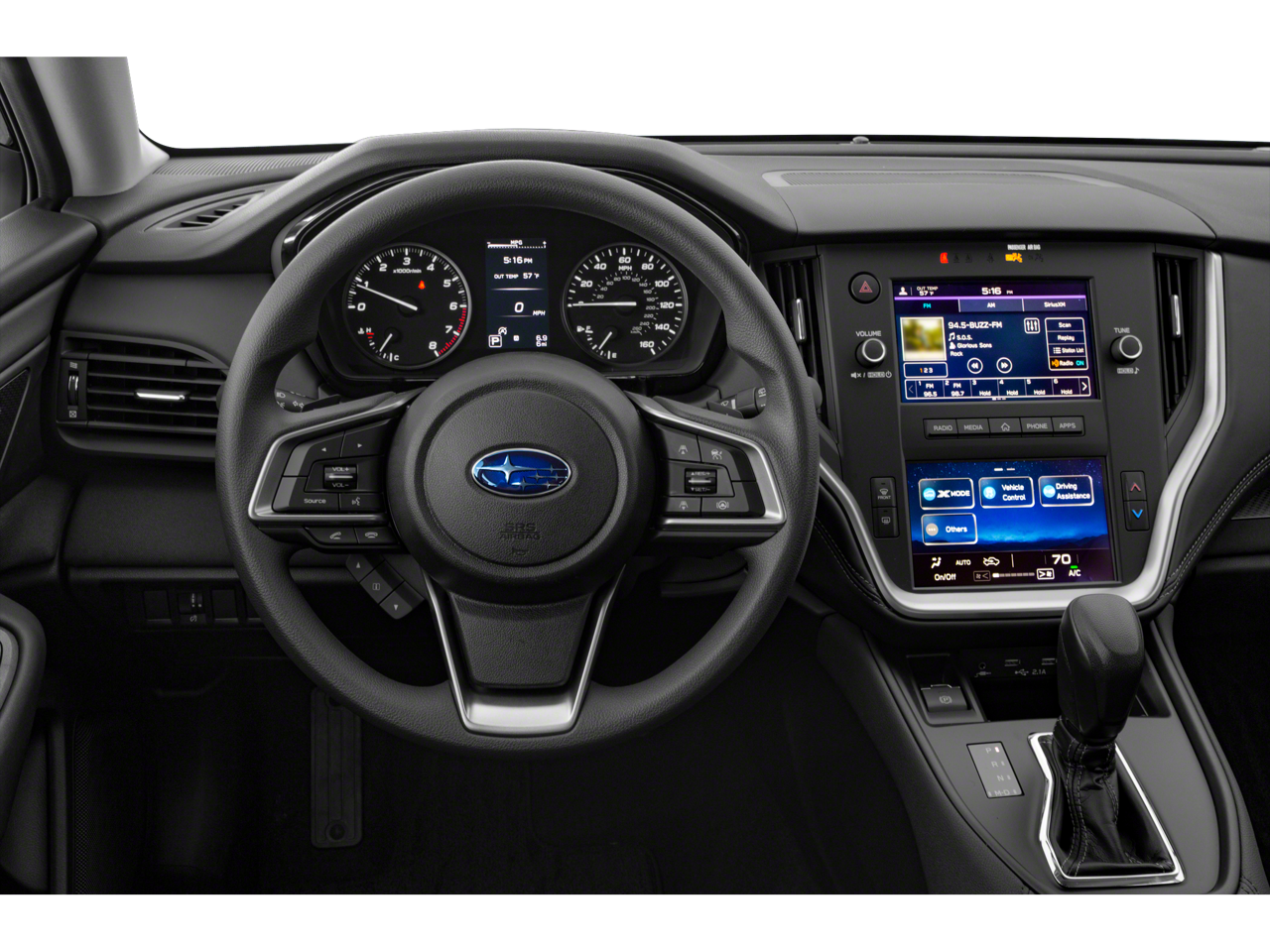 - Radio: Subaru STARLINK Dual 7.0" Multimedia System -inc: AM/FM stereo, HD Radio, voice activated controls, Bluetooth® audio streaming and hands-free phone connectivity w/SMS text messaging (applicable w/compatible cellphone), iPod control capability, SiriusXM All Access radio (subscription required), SiriusXM Travel Link (subscription required), smartphone integration: Android Auto, CarPlay and STARLINK cloud applications, 4 speakers, 3.5mm auxiliary input jack and dual USB input ports