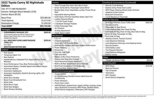 Featuring a sleek, black exterior and a host of premium features, the Camry SE Nightshade is a true standout in its class. Key highlights include: