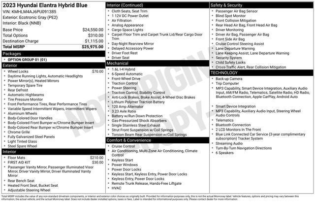 - Vehicle Name: Hyundai Elantra Hybrid