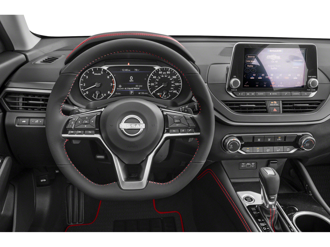 CVT with Xtronic, 4-Wheel Disc Brakes, 6 Speakers, ABS brakes, Air Conditioning, Alloy wheels, AM/FM radio: SiriusXM, Auto High-beam Headlights, Black Outside Mirrors, Blind Spot Warning, Body-Colored Splash Guards, Brake assist, Bumpers: body-color, Chrome Bumper Protector, Delay-off headlights, Driver door bin, Driver vanity mirror, Dual front impact airbags, Dual front side impact airbags, Electronic Stability Control, Four wheel independent suspension, Front anti-roll bar, Front Bucket Seats, Front Center Armrest, Front reading lights, Front Sport Bucket Seats, Fully automatic headlights, Heated Front Seats, Illuminated entry, Knee airbag, Leather Shift Knob, Leather-Appointed Seat Trim, Low tire pressure warning, NissanConnect, NissanConnect featuring Apple CarPlay and Android Auto, Occupant sensing airbag, Outside temperature display, Overhead airbag, Overhead console, Panic alarm, Passenger door bin, Passenger vanity mirror, Power door mirrors, Power driver seat, Power steering, Power windows, Premium Sport Interior Finishers, Radio data system, Radio: AM/FM Audio System, Rear anti-roll bar, Rear Parking Sensors, Rear reading lights, Rear seat center armrest, Rear side impact airbag, Rear window defroster, Remote keyless entry, Security system, Single Panel Moonroof, Speed control, Speed-sensing steering, Speed-Sensitive Wipers, Split folding rear seat, Sport Seat Trim, SR Floor Mats/Trunk Mat/Hideaway Nets, SR Premium Package, Steering wheel mounted audio controls, Tachometer, Telescoping steering wheel, Tilt steering wheel, Traction control, Trip computer, Trunk Organizer Tray, Variably intermittent wipers, Wheels: 19 Sport Alloy.