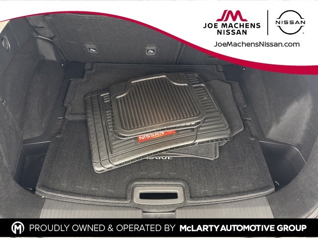 Inside, the Rogue SL offers a refined cabin featuring leather-appointed seating, heated front bucket seats, and a power-adjustable drivers seat with memory and lumbar support. A heated leather steering wheel, tri-zone automatic climate control, rear door sunshades, illuminated kick plates, and a frameless auto-dimming rearview mirror with universal remote elevate everyday comfort. Flexible cargo solutions include a 60/40 split folding rear seat, cargo tray organizer, concealed storage, and floor mats with a two-piece cargo area protector.