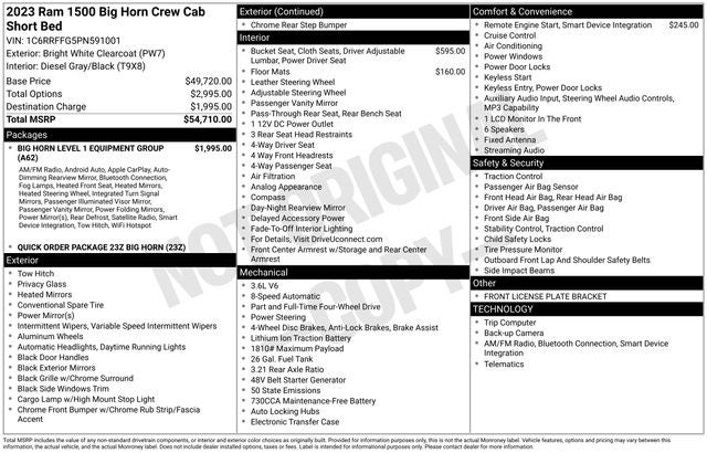 Experience the exceptional capabilities and premium features of the 2023 Ram 1500 Big Horn/Lone Star. Visit our showroom today and let our knowledgeable sales team help you find the perfect truck to meet your needs. Don't miss out on the opportunity to own this impressive and versatile vehicle.