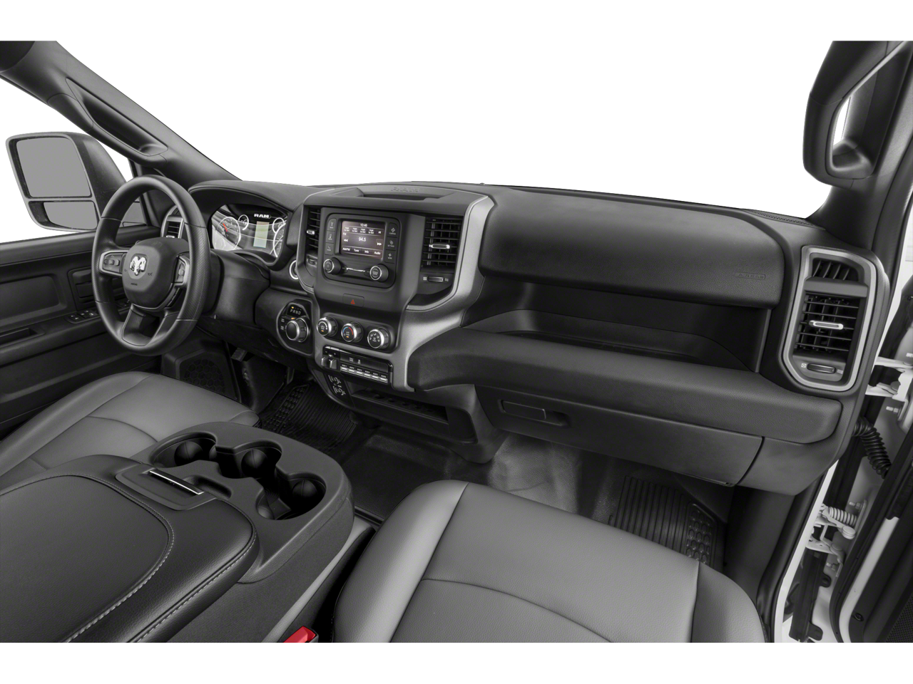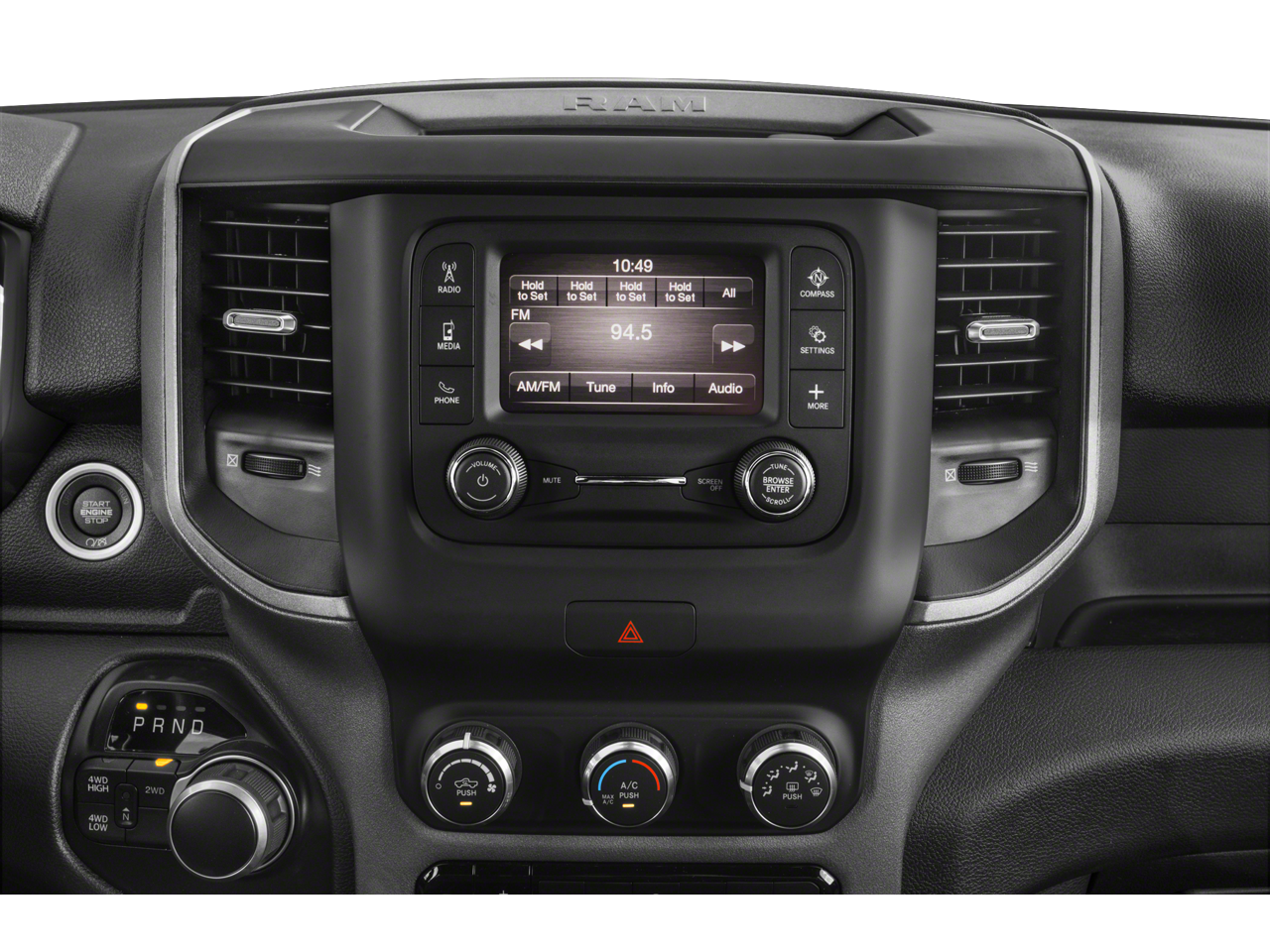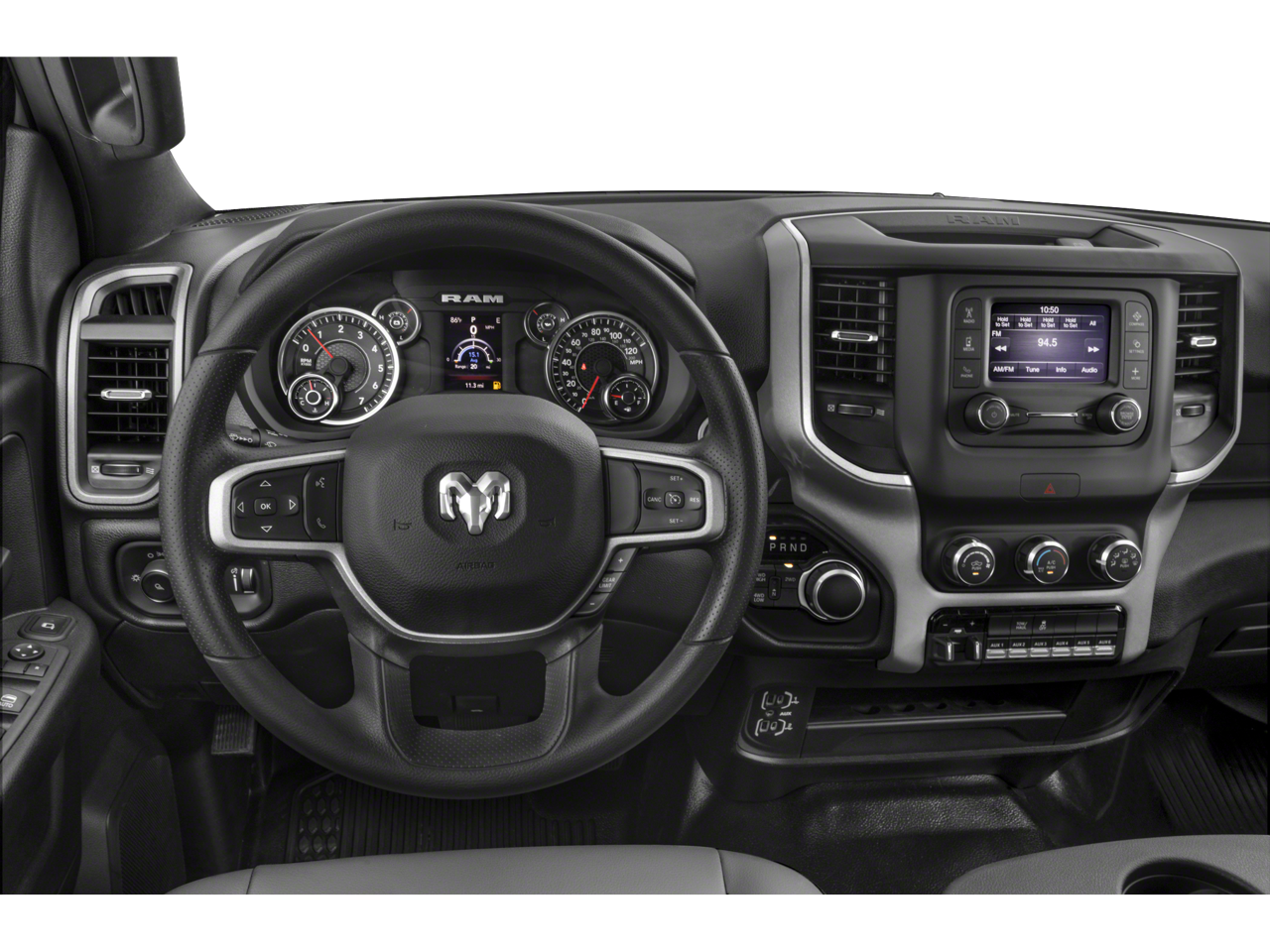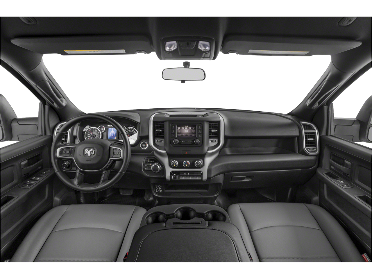 220 Amp Alternator, 3.73 Axle Ratio, 40/20/40 Split Bench Seat, 6 Speakers, Air Conditioning, Black Exterior Mirrors, Bright Front Bumper, Bright Rear Bumper, Carpet Floor Covering, Center Hub, Chrome Appearance Group, Chrome Grille Surround, Chrome Headlamp Bezels, Cloth 40/20/40 Bench Seat, Exterior Mirrors Courtesy Lamps, Exterior Mirrors w/Heating Element, Exterior Mirrors w/Supplemental Signals, Front Center Armrest w/Storage, Fully automatic headlights, GPS Antenna Input, Heavy Duty Snow Plow Prep Group, Manual Adjust 4-Way Front Passenger Seat, Manual Folding Exterior Mirrors, Manual Telescoping Mirrors, Matte Black Mesh w/Chrome Grille, Mirror Running Lights, Passenger door bin, Power Adjust Mirrors, Power Heat Fold Telescopic Mirrors, Power steering, Power windows, Power-Adjustable Convex Aux Mirrors, Quick Order Package 2HA Tradesman, Radio data system, Radio: Uconnect 3 w/5 Display, Rear Power Sliding Window, Rear Window Defroster, Remote keyless entry, SiriusXM Satellite Radio, Speed control, Storage Tray, Tip Start, Traction control, Tradesman Level 2 Equipment Group, Variably intermittent wipers, Wheels: 18 x 8.0 Steel Chrome Clad.
