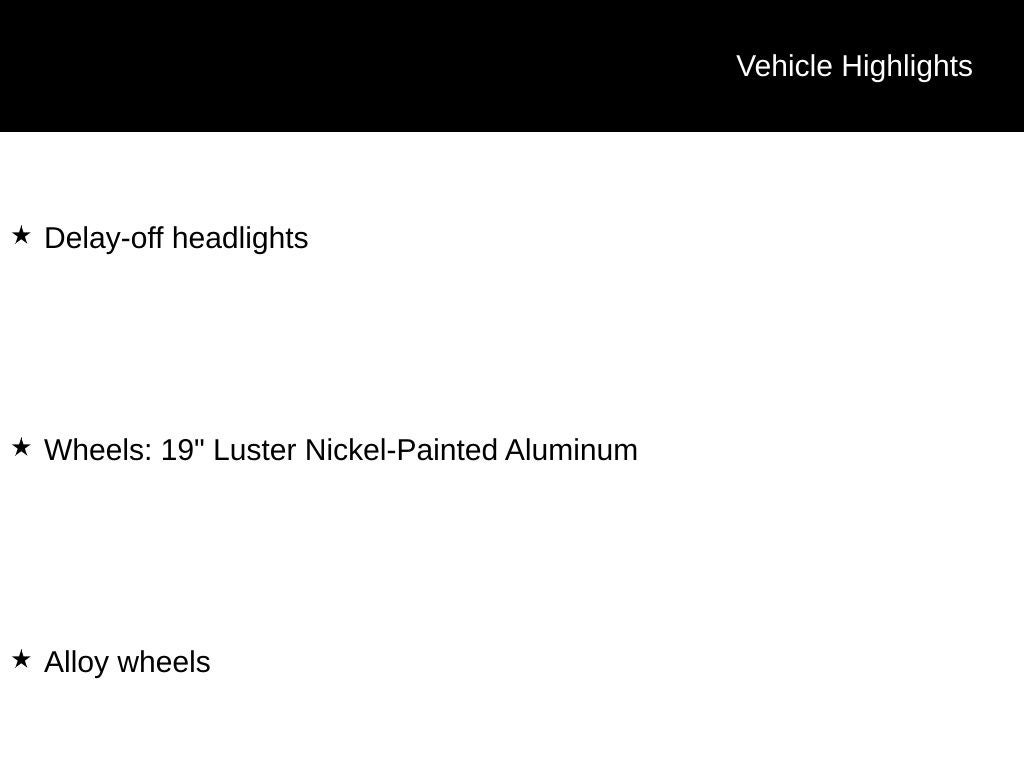 - Wheels: 19" Luster Nickel-Painted Aluminum
