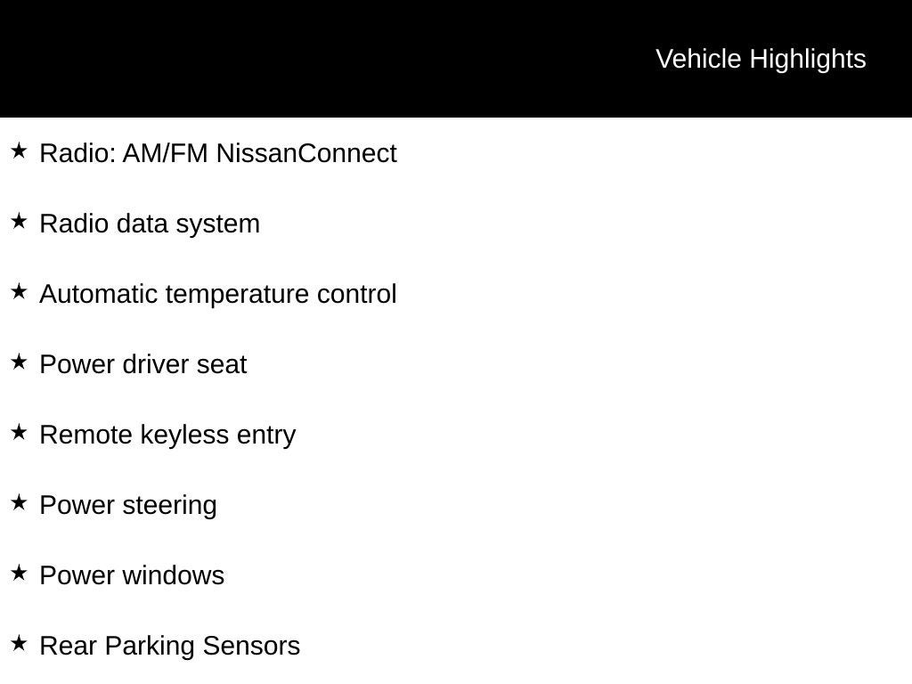 Technology is front and center with NissanConnect featuring Apple CarPlay and Android Auto, allowing seamless smartphone integration for navigation, music, calls, and apps. Bluetooth® connectivity, steering wheelmounted audio controls, and a clear touchscreen display keep you connected without distraction. Additional features such as speed-sensitive wipers, outside temperature display, and a radio data system enhance the overall driving experience and usability.