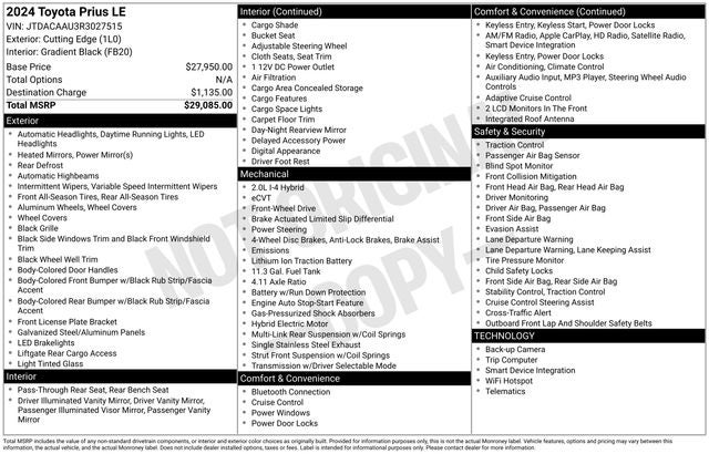 - Vehicle Name: Toyota Prius