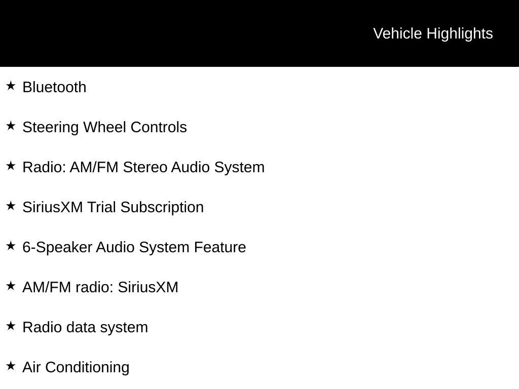 - SiriusXM Trial Subscription enjoy a Platinum Plan trial subscription (IMPORTANT: The SiriusXM trial subscription is not provided on vehicles that are ordered for Fleet Daily Rental ("FDR") use. Trial subscription is subject to the SiriusXM Customer Agreement and privacy policy, visit www.siriusxm.com which includes full terms and how to cancel. All fees, content, features, and availability are subject to change.)