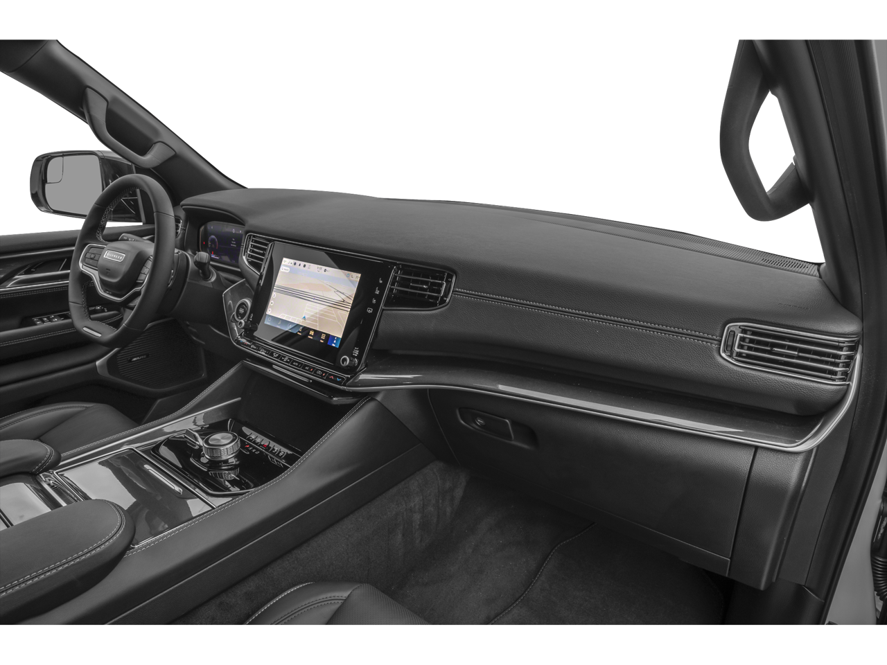 10 Speakers, 2nd Row Manual Window Shades, 3rd row seats: bench, 4-Wheel Disc Brakes, ABS brakes, Air Conditioning, Alloy wheels, AM/FM radio: SiriusXM with 360L, Anti-whiplash front head restraints, Apple CarPlay/Android Auto, Audio memory, Auto Adjust In Reverse Exterior Mirrors, Auto High Beam Headlamp Control, Auto Power Folding Exterior Mirrors, Auto Power-Folding Mirrors, Auto-Dimming Exterior Driver Mirror, Auto-dimming Rear-View mirror, Auto-leveling suspension, Automatic temperature control, Compass, Convenience Group I, Delay-off headlights, Driver door bin, Driver vanity mirror, Driver's Seat Mounted Armrest, Dual front impact airbags, Dual front side impact airbags, Emergency communication system: Jeep Connect, Exterior Mirrors Approach Lamps, Exterior Mirrors w/Memory, Exterior Mirrors w/Supplemental Signals, Four wheel independent suspension, Front anti-roll bar, Front Bucket Seats, Front Center Armrest w/Storage, Front dual zone A/C, Front fog lights, Front reading lights, Fully automatic headlights, Garage door transmitter, Heated door mirrors, Heated Exterior Mirrors, Heated front seats, Heated Second Row Seats, Heated steering wheel, Illuminated entry, Knee airbag, Leather Trimmed Bucket Seats, Low tire pressure warning, Memory seat, Navigation System, Normal Duty Suspension, Occupant sensing airbag, Outside temperature display, Overhead airbag, Overhead console, P&P Park & Unpark Assist w/Stop System, Passenger door bin, Passenger seat mounted armrest, Passenger vanity mirror, Power adjustable front head restraints, Power door mirrors, Power driver seat, Power passenger seat, Power steering, Power windows, Quick Order Package 25E, Radio data system, Radio: Uconnect 5 Nav w/10.1 Display, Rain Sensitive Windshield Wipers, Rear air conditioning, Rear anti-roll bar, Rear dual zone A/C, Rear reading lights, Rear seat center armrest, Rear window defroster, Reclining 3rd row seat, Remote keyless entry, Side Distance Warning, Speed-sensing steering, Split folding rear seat, Steering wheel memory, Steering wheel mounted audio controls, Surround View Camera System, Telescoping steering wheel, Tilt steering wheel, Traction control, Turn signal indicator mirrors, Ventilated front seats.